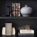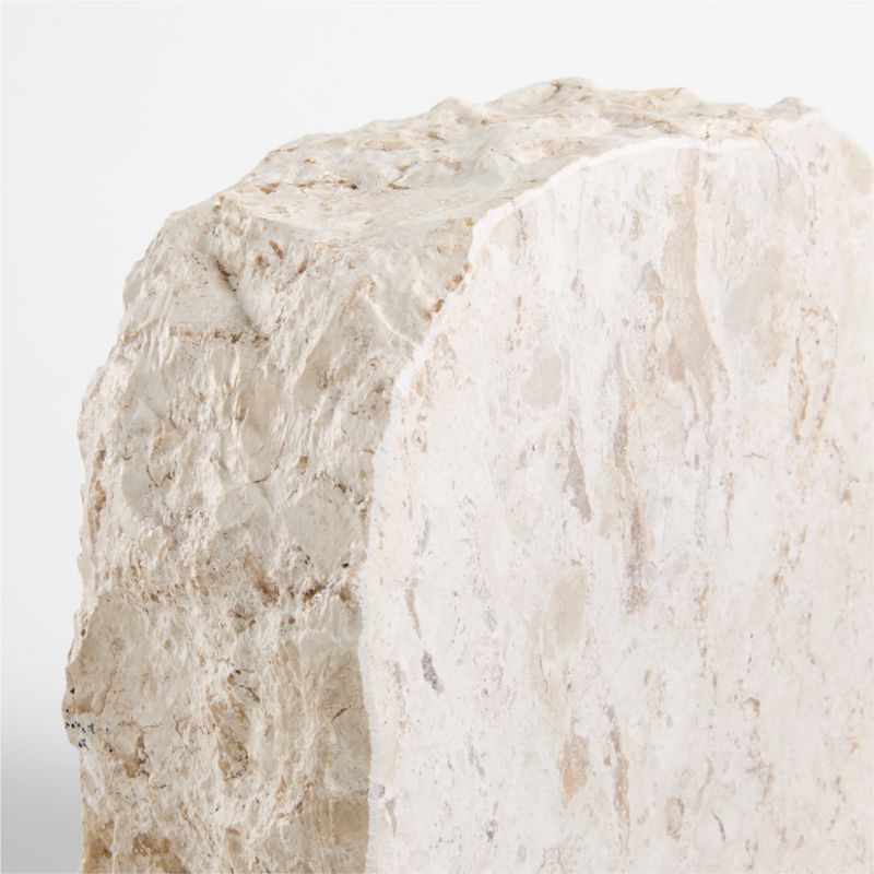 Nuestros sujetalibros Durres aportan una fascinación natural a su biblioteca. Hábiles artesanos tallan y pulen a mano el cremoso travertino, creando un par que equilibra la textura rugosa con las superficies lisas. Diseñados para sujetar y apoyar sus volúmenes favoritos, los sujetalibros también se unen para formar un precioso objeto geológico digno de exhibirse por sí solo.