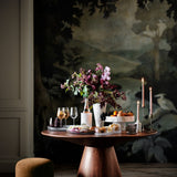 Costera y desenfadada, la mesa de comedor Palisades está perfectamente proporcionada para cocinas y comedores más pequeños. Cada centímetro canta las alabanzas del walnut, con un acabado en walnut natural para llamar la atención sobre el bello veteado. La artesanía brilla en el borde con bandas de la mesa bistro, el tablero con motivos de rayos de sol y los contornos biselados de la parte inferior. El borde bullnose de la parte superior se hace eco de los ángulos de la base cónica del pedestal para una silueta moderna y escultural.