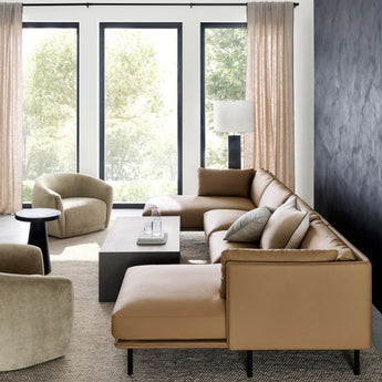 Acurrúquese en Valen, nuestra versión contemporánea y supercómoda de una silueta clásica del diseño moderno. Le encantará su escultural perfil en forma de huevo, sus brazos que se curvan en un abrazo envolvente y un giro que alcanza los 360 grados. Una delgada cubierta deja espacio para un asiento extraplano. Cuidadosamente confeccionada en terciopelo taupe para una sensación de lujo que sigue siendo duradera para el uso diario, esta exclusiva silla giratoria luce impresionante sola o en pareja.