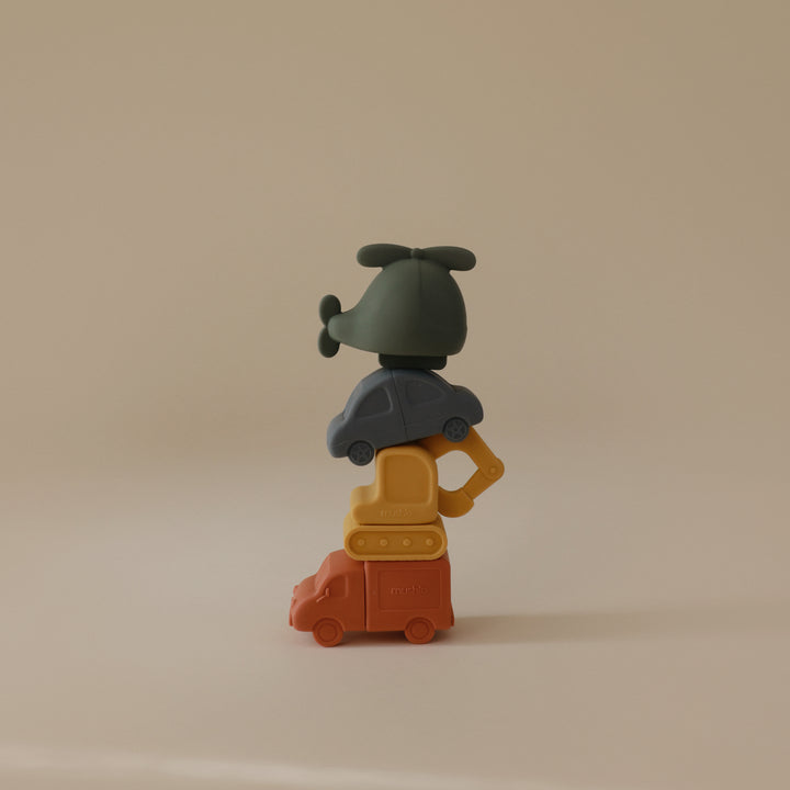 Deja volar la imaginación de tu hijo con el set de baño de vehículos, que incluye un helicóptero, un coche, un camión y una excavadora. Fabricado con silicona 100 % de grado alimenticio, su suave material es fácil de sostener para las pequeñas manos, tanto húmedas como secas. Su ingenioso diseño permite que cada juguete se abra en dos piezas separadas para una limpieza profunda y un secado rápido. Esta característica permite que los juguetes se mantengan libres de moho gracias a sus piezas fáciles de limpiar y aptas para lavavajillas. Después de cada uso, recomendamos abrir las piezas para enjuagarlas y secarlas al aire antes de guardarlas.