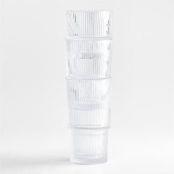 Una versión segura de Exterior de un favorito de los clientes. Brillantes hileras de acrílico acanalado dan forma a un highball Cristal tan adecuado para un cóctel al aire libre como para una barbacoa. Mientras admira cómo la luz juega con el diseño estriado, puede estar tranquilo sabiendo que cada Cristal es inastillable y apto para el lavavajillas.