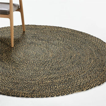 Trenzas de yute y sisal enrollan una alfombra redonda de belleza orgánica y textura satisfactoria. La mezcla de fibras teñidas de negro y naturales crea un intrigante contraste y un giro deliciosamente oscuro en la clásica alfombra de yute. Los artesanos tejen las fibras a mano y luego utilizan máquinas de coser manuales para dar forma circular a la alfombra y rematarla con puntadas en zigzag. Ideal para entradas y otras zonas de mucho tránsito, nuestra alfombra trenzada redonda Avesi es una exclusiva Crate and Barrel . Debido a los materiales naturales, cada una es única.