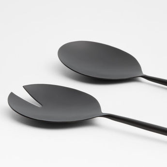 Sirva ensaladasy aporte un toque de oscuro dramatismo a la mesa con nuestro exclusivo juego de utensilios negros para servir. Con mangos largos y ultraplanos, cuencos poco profundos y llamativos recortes, el par aporta un aire elegante a las cenas elegantes y a los almuerzos informales. Para completar el look, combine los servidores de acero inoxidable con acabado negro con cualquiera de nuestros cubiertos negros.