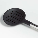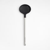 - Cuchara ranurada de silicona negra y acero inoxidable Crate & Barrel 0,95de altura 3,78ancho 13,25 diámetro