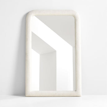 Inspirándonos en algunas de nuestras piezas de mobiliario favoritas, hemos tapizado un espejo para darle un aspecto inesperado. Harris envuelve un espejo de pie de gran tamaño en boucle blanco, suavizando los reflejos así como el redondeado marco rectangular. Irresistiblemente mullido, el tejido texturizado aporta una calidez orgánica a la pared. La estructura de doble marco es un sutil detalle de diseño que añade dimensión y profundidad. Nos encanta especialmente este espejo en una habitación decorada con una de nuestras sillas, sofás o cojines boucle.