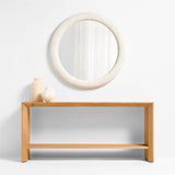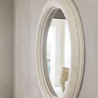 Inspirándonos en algunas de nuestras piezas de mobiliario favoritas, hemos tapizado un espejo para darle un aspecto inesperado. Harris envuelve un clásico espejo de pared redondo en boucle blanco, envolviendo los reflejos en suavidad. Irresistiblemente mullido, el tejido texturizado aporta una calidez orgánica a la pared. La estructura de doble marco es un sutil detalle de diseño que añade dimensión y profundidad. Nos encanta especialmente este espejo en una habitación decorada con una de nuestras sillas, sofás o cojines boucle.