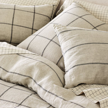 Rejilla reversible de cáñamo natural Arcadia Tan y Midnight Navy King Almohada de cama Sham