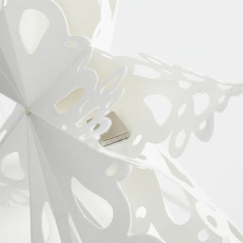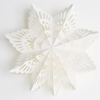 Cortado con láser y plegado de forma intrincada, este gran adorno de copo de nieve de papel eleva una manualidad clásica de la infancia al nivel de arte. Talentosos artesanos elaboran cada uno de ellos a mano, capturando la delicada belleza y la intrincada forma de encaje de los copos de nieve. Cree una auténtica nevada en su pared, árbol de Navidad o puerta con los copos de nieve más pequeños de nuestra exclusiva colección Día de nieve. El adorno copo de nieve grande se mantiene abierto gracias a los imanes y luego se pliega para guardarlo de forma compacta.