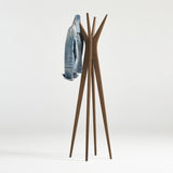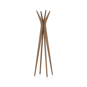 Diseñado para complementar nuestra colección de muebles inspirada en la década de 1960, Tate astilla vigas de madera noble walnut para dar forma a un minimalista perchero. Cuatro patas de madera torneada suavemente inclinadas adoptan una postura que ahorra espacio ramificándose en la parte superior para sostener abrigos, sombreros y bolsos.