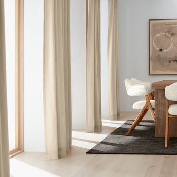 Nuestra exclusiva alfombra Whistler ofrece un dramatismo oscuro y discreto. Tejida a mano por artesanos altamente cualificados, la alfombra combina el yute de tonos naturales con la viscosa lustrosa en una miríada de tonos charcoal y negro. La interacción de ambas fibras confiere a la alfombra una fascinante profundidad, dimensión y un aspecto artísticamente desgastado. La elegante Whistler brilla en un lugar poco o medianamente transitado de la casa.