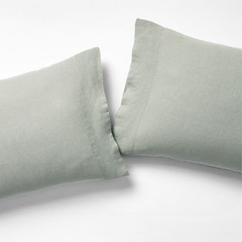Haga una cama moderna con estas fundas de almohada de cáñamo en un tono verde frío inspirado en la salvia que sirve como un neutro elevado. Tejidas con fibra procedente de la capa exterior de un cultivo benigno de Cannabis sativa, nuestra ropa de cama de cáñamo se siente increíblemente suave y ligera contra la piel. El tejido naturalmente transpirable le mantiene fresco y cómodo durante toda la noche. Este sereno juego de fundas de almohada se mezcla y combina sin esfuerzo con el resto de ropa de cama colorida y neutra de nuestra exclusiva colección de cáñamo.