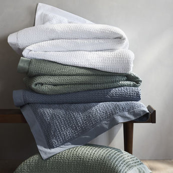 Un tejido de gofre elevado y sobredimensionado confiere a nuestra funda de almohada una textura irresistiblemente gruesa y una acogedora sensación que funciona todo el año. La ropa de cama de peso medio tiene una sensación reconfortante sin ser pesada, aligerada por el generoso borde de percal en el mismo verde inspirado en la salvia. Tejida en algodón orgánico, nuestra manta waffle crea una cama relajada y elegante a la vez.