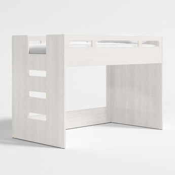 - Cama alta infantil baja de madera esmaltada blanca con escalera izquierda 54de altura 78de ancho 41,25