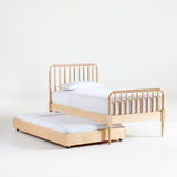 Prepárese para fiestas de pijamas o situaciones de habitación compartida con un poco de ayuda de nuestra cama nido Jenny Lind de arce. Sencilla y limpia, coordina maravillosamente con nuestras icónicas y superventas camas Jenny Lind (y también se puede utilizar como almacenaje bajo la cama para ahorrar espacio). Cuando no se utiliza, esta pieza funcional simplemente se esconde debajo de la cama.