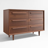 Cómoda ancha de 6 cajones Kids Tatum de madera de Walnut de mediados de siglo