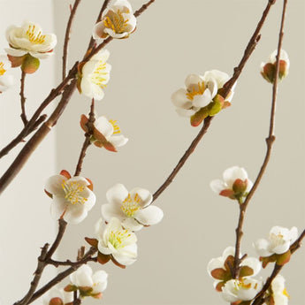 Dé la bienvenida a la primavera con nuestra rama de flor de cerezo de imitación. Cargado de cremosas floraciones, el alto tallo engaña a la vista con delicados detalles. Las delicadas flores y los pequeños capullos capturan el aspecto de una rama recién cortada. De calidad inigualable y hábilmente elaborada para que tenga el mismo aspecto que la real, la rama constituye una vistosa exhibición de temporada que no requiere mantenimiento en uno de nuestros jarrones de suelo artesanales (se venden por separado).