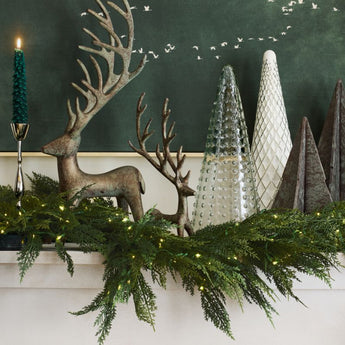 Nuestra guirnalda de hojas perennes de imitación recrea la grácil cascada de finas ramas del árbol de cicuta. Tachonada con cientos de luces blancas estrelladas, esta guirnalda de pino de imitación está bellamente elaborada para que parezca real. Festonee el umbral de su puerta o la repisa de la chimenea, encienda la guirnalda a pilas o utilice el temporizador y observe cómo centellea. De una calidad inigualable, nuestra guirnalda preiluminada animará su hogar durante años con el aspecto de la cicuta recién cortada.