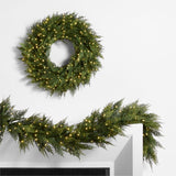 Guirnalda de Navidad de imitación de pino Hemlock preiluminada con LED de tacto real 6'