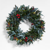 Las bayas rojas brillan como joyas sobre un exuberante fondo de frondosos tallos de olivo en nuestra corona de imitación extraordinariamente realista. Una forma rápida de preparar su hogar para las fiestas, la corona engalana una puerta o repisa con el aspecto de elementos botánicos reales que durarán las fiestas y más allá. Nuestra corona de olivo y bayas rojas es una exclusiva de Crate & Barrel.