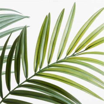 Nuestra alta hoja de palmera de imitación infunde instantáneamente a su decoración un relajado ambiente tropical. De calidad incomparable y hábilmente elaborada para parecerse a la real, el tallo ostenta hojas vibrantes que fluyen de forma realista de un verde más intenso a un verde más brillante. Coloque la hoja de palmera por sí sola o en grupos en uno de nuestros jarrones de suelo para refrescar su espacio.