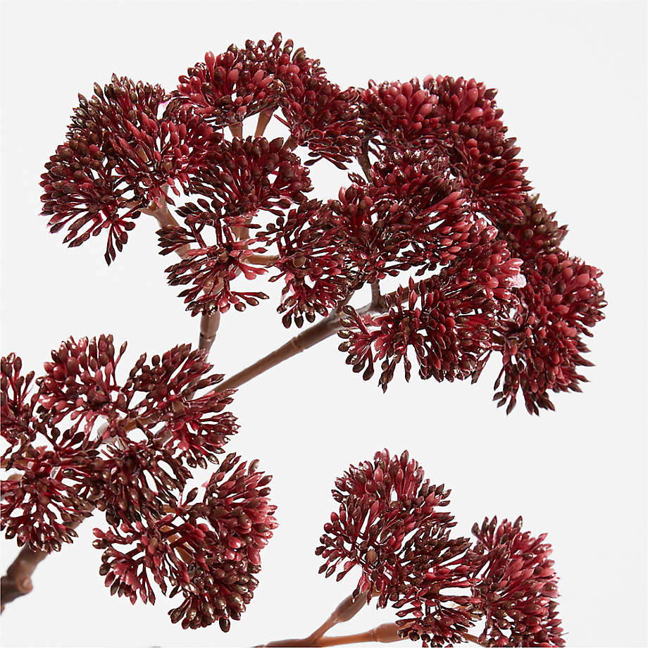 Este tallo de sedum, uno de los favoritos del otoño, tiene toda la belleza natural del auténtico, tan realista que juraría que acaba de ser arrancado del jardín. Innumerables vainas de semillas se agrupan en tallos delgados, y la rica paleta de rojos añade calidez otoñal a su decoración. Mezcle y combine la rama alta con otras plantas exclusivas de Abigail Ahern para crear un precioso ramo artificial recién cortado del jardín que durará y durará.