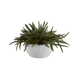 Engaña a la vista con esta planta realista. La exuberante y compleja suculenta lápiz de imitación "crece" con entusiasmo en una amplia gama de tonos verdes y de una manera asimétrica realista. La suculenta, que se eleva desde el suelo artificial, se derrama con gracia sobre una maceta redonda de cemento con un acabado blanco de textura profunda.