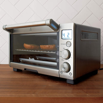 El Horno Inteligente Breville está ahora disponible en formato compacto para espacios más pequeños. El horno de alta potencia "piensa" con una función única Element IQ que proporciona la potencia adecuada en el momento adecuado, ajustable a sus preferencias. Dispone de ocho programas de cocción preestablecidos: tostar, bagel, hornear, asar, gratinar, pizza, galletas y recalentar.