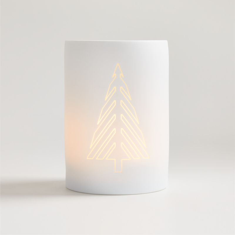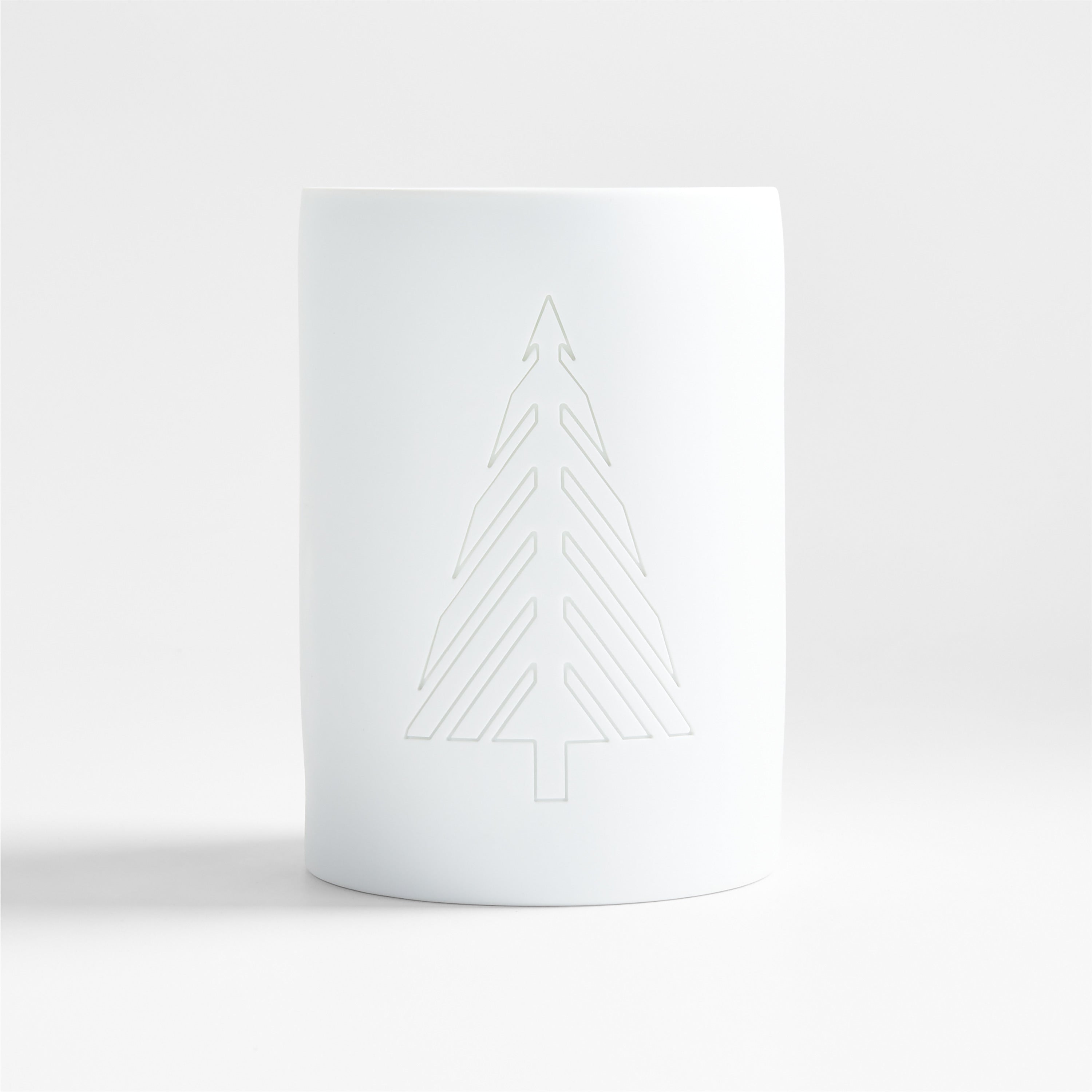 Moderno y lineal, el recorte de un pino deja entrever la luz de las velas a través de nuestra hélice de porcelana blanca mate. Un cálido resplandor fluye de los recortes angulares, creando un brillo invernal sobre la repisa de una chimenea, una consola de entrada o un bufé. Esparza o agrupe el portavelas mediano Árbol de Navidad con múltiplos de los otros tamaños coordinados para crear un centro de mesa nevado en la mesa de comedor navideña.