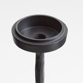 Nuestro candelabro de pie independiente Maloy adorna cualquier rincón de la casa con una iluminación atmosférica y un toque de dramatismo. Martillado a mano por hábiles artesanos, el soporte de hierro negro extiende un esbelto tallo desde una robusta base hasta una plataforma superior en la que caben velas cónicas y pilares. Nos encanta la altura de Maloy, su textura única y su presencia atemporal en una entrada, un pasillo o cualquier rincón que necesite un acento llamativo.