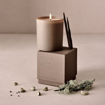 Totalmente moderna en camel monocromático. Nuestra vela de tres mechas infunde el aire con los brillantes aromas del limón, la bergamota y el cardamomo, cimentados por la rica terrosidad del cuero, el cedro, el ámbar, el oud y el musgo de roble. Empaquetado en una caja de regalo camel, el recipiente Cristal mate a juego relleno de cera en el mismo tono tiene un aspecto limpio y nítido que calienta su mesa de café, tocador o repisa de la chimenea. Parte de nuestra exclusiva colección de fragancias Monochrome, la vela de triple pabilo Nº 04 Suede es una exclusiva de Crate & Barrel.