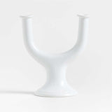 Inspirado en la antigua cerámica descubierta en la costa de Italia, nuestro portavelas Valla muestra la misma artesanía atemporal. Hábiles artesanos dan forma a la espoleta de gres antes de aplicar a mano una gruesa capa de esmalte volcánico blanco brillante. El resultado es fresco, moderno e intrigantemente texturado, como un objeto encontrado o un tesoro de mercadillo italiano. Combine el portavelas doble en forma de U con los demás candelabros de nuestra colección Valla para crear un ambiente costero y soleado.