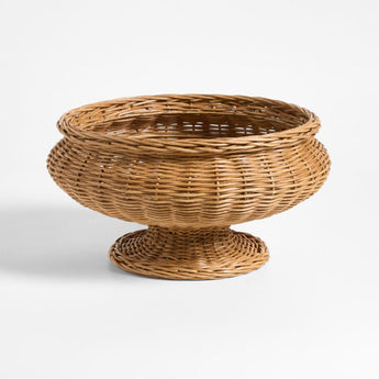 La silueta clásica de la antigua cerámica italiana, reimaginada en mimbre. Teñido de marrón cálido, el ratán natural es tejido a mano por hábiles artesanos en un cuenco de pedestal graciosamente curvado. El resultado es fresco, orgánico y moderno con un toque de capricho. Utilice este cuenco de centro de mesa para exhibir nuestras plantas botánicas de imitación, o agrúpelo con las demás piezas de la colección Alford para obtener una nueva visión de un clásico atemporal.