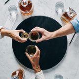 La madera de acacia ricamente veteada se convierte en suaves y esculturales elementos esenciales para servir con un acabado negro que le confiere un aspecto moderno y espectacular. Naturalmente adecuado para el uso diario, el entretenimiento o la exhibición artística, nuestro lazy Susan se redondea en curvas orgánicas, proporcionando un fácil acceso a aperitivos, quesos o condimentos. Nuestro exclusivo servidor giratorio está tallado en un único bloque de madera. Para una mesa bellamente coordinada, combine el lazy Susan con las otras piezas de servicio de acacia ebonizada de nuestra colección Tondo.