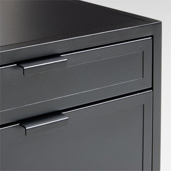 Una nueva incorporación a nuestra apreciada colección Casement, inspirada en las ventanas abatibles francesas vintage, este elegante y estilizado archivador va al grano con líneas limpias y un elegante acabado en negro. El diseño aerodinámico de acero hace flotar dos cajones sobre una base abierta y lineal de líneas minimalistas. En un cajón pequeño caben bolígrafos, blocs de notas y otros objetos pequeños, mientras que en el cajón inferior, más grande, caben archivadores de tamaño oficio y carta. Ambos cuentan con tiradores de pestillo de inspiración industrial. El diseño aerodinámico de acero del archivador combina fácilmente tanto con muebles tradicionales como más modernos.