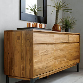 - 3 cajones de madera de mango con frentes de teca reciclada