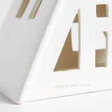 Cuando se llena con una candelita incandescente, nuestro chalet alpino de cerámica blanca con ventanas recortadas crea el acogedor aspecto de un destino vacacional lleno de luz. El hotel blanco como la nieve, de inspiración suiza, tiene un estilo limpio y minimalista que se adapta a la decoración navideña moderna. Combínelo con nuestros otros estilos arquitectónicos para crear una acogedora aldea invernal en su repisa, bufé o mesa de comedor. Exclusiva de Crate & Barrel, cada casa de cerámica coleccionable lleva grabado en el reverso su estilo arquitectónico y el año 2024.