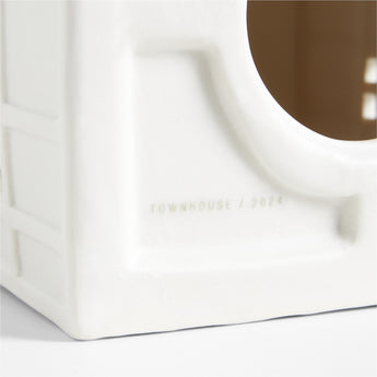 Cuando se llena de candelitas incandescentes, esta alta casa adosada con ventanas recortadas crea el acogedor aspecto de una casa Tudor llena de luz. La casa de cerámica esmaltada en blanco nieve tiene un estilo limpio y minimalista que se adapta a la decoración navideña moderna. Combínelo con nuestros otros estilos arquitectónicos para crear una acogedora aldea invernal en su repisa, bufé o mesa de comedor. Una exclusiva navideña de Crate & Barrel, cada casa de cerámica coleccionable lleva grabado en el reverso su estilo arquitectónico y el año 2024.
