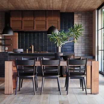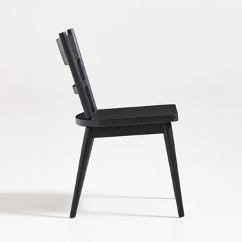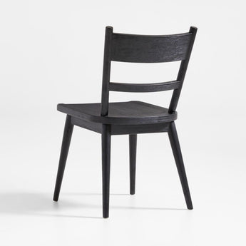 El encanto fácil de Arno reside en sus sutiles detalles de diseño. La más mínima curva en el respaldo de listones de la silla proporciona soporte para la espalda, mientras que el asiento esculpido garantiza un asiento cómodo. Las patas cónicas se abren para dar una sensación de movimiento, y los bordes suavizados suavizan todos los ángulos. El cepillado con alambre y el acabado negro ebonizado resaltan la veta de esta versátil silla de comedor de madera dura, exclusiva de Crate & Barrel.