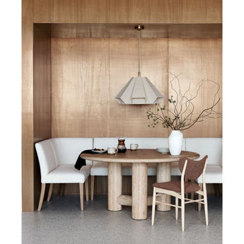 Un clásico del diseño moderno danés revive para los interiores modernos con nuestra silla de comedor Frederique. Un icónico cojín de respaldo en forma de media luna hace flotar curvas orgánicas sobre el esbelto armazón de madera de roble natural, perfilado con contornos ahusados y aligerado con un acabado cerusa marfil. La tapicería de mezcla de lana complementa en marrón óxido, al tiempo que añade una generosa textura en el tejido nubby y un notable detalle con dos botones empenachados en el respaldo. Nos encanta la herencia retro de la silla auxiliar renovada con un estilo actual.