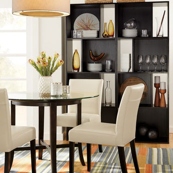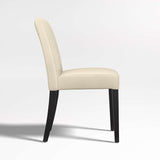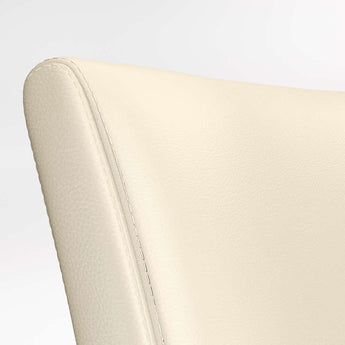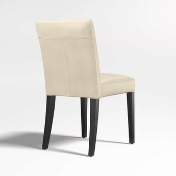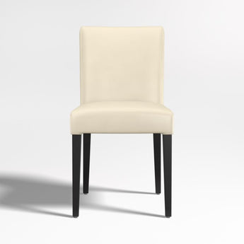 La elegante y contemporánea Lowe envuelve la clásica silla estilo Parsons en colores puros, con una amplia gama de tonalidades en piel bicast granulada. Con un amplio asiento y respaldo acolchados, está diseñada para relajarse. ^ Con un generoso recorrido de asiento, la silla auxiliar de cuero Lowe adopta una postura elegante y contemporánea. Envuelta en suave piel bicast marfil, el asiento y el respaldo acolchados y ajustados de la silla de comedor de piel Lowe están perfectamente proporcionados a las esbeltas patas teñidas de ébano de the frame. Con el toque final del detalle del doble pespunte, la silla auxiliar Lowe de piel marfil coordina con las numerosas opciones de estilo y color de la colección para personalizar su asiento ideal. La silla auxiliar Lowe de piel marfil es una exclusiva de Crate and Barrel .