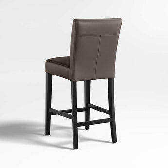 El diseño clásico estilo Parsons se refleja en nuestros taburetes de piel Lowe, tapizados en suave piel bicast con textura de guijarros en un tono ahumado oscuro. Estos taburetes elegantes y contemporáneos, especialmente diseñados para barras y mostradores, ofrecen un asiento cómodo y espacioso y un perfil largo y esbelto. La confección con doble costura refina el asiento y el respaldo acolchados y perfectamente proporcionados con las delgadas patas teñidas de ébano de the frame. Los taburetes Lowe de piel ahumada son exclusivos de Crate and Barrel .