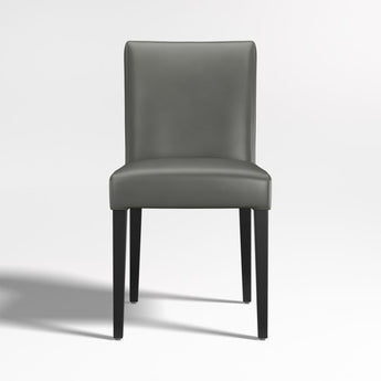 La elegante y contemporánea Lowe envuelve la clásica silla estilo Parsons en colores puros, con una amplia gama de tonalidades en piel bicast granulada. Con un amplio asiento y respaldo acolchados, está diseñada para relajarse. ^ Envuelta en piel bicast gris ahumada, las generosas proporciones de la silla auxiliar Lowe se muestran en un asiento y respaldo espaciosos y ajustados, acabados con detalle de doble pespunte. Las delgadas patas teñidas de ébano realzan su refinada postura. Agrupe la silla de comedor Lowe de piel ahumada con otras piezas de nuestra variada colección de asientos Lowe para crear una disposición única. La silla auxiliar Lowe de piel ahumada es una exclusiva de Crate and Barrel .