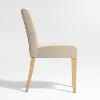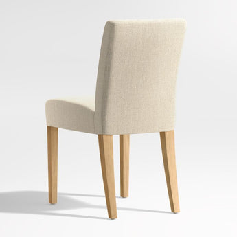 Con un amplio asiento y respaldo acolchados, nuestra silla de comedor Lowe está diseñada para la sobremesa. La tapicería de mezcla de lino en taupe neutro adapta el asiento acolchado, apretado en la sofisticación, la asociación a la perfección con las piernas delgadas, de tono natural de madera dura. Las numerosas opciones de asiento de nuestra colección Lowe en una gama de cueros y telas a juego combinan a la perfección. La silla de comedor tapizada Lowe es una exclusiva de Crate & Barrel.
