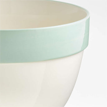 Nuestro juego de cuencos Bloom mezcla, marina y sirve en una paleta alegre pero sofisticada de modernos tonos primaverales. Los cuatro cuencos mezcladores de gres están esmaltados en blanco brillante y pintados a mano en amarillo dorado, muted teal y dos tonos de rosa en sus bordes. Para una repostería colorida y coordinada o como regalo para su repostera favorita, combine los cuencos aptos para lavavajillas con los demás utensilios esenciales de nuestra exclusiva colección Bloom.