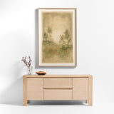 Este paisaje imaginario hunde sus raíces en el recuerdo de los retozos infantiles de la artista. Con una paleta apagada de marrones, beiges y verdes, la artista utiliza formas suaves y pinceladas difuminadas para sugerir los contornos borrosos de las escenas recordadas. Nuestra reproducción giclée capta todos los matices de la obra original, presentada bajo Cristal acrílico con un paspartú de marfil y marco de roble walnut.
