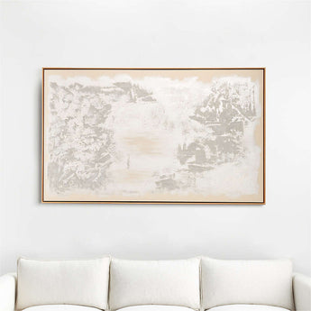 Formas grises texturizadas revolotean sobre una nube de blanco para crear una composición etérea y abstracta con sensación de movimiento y profundidad. Las capas acumuladas y el espacio negativo estratégico confieren a la obra una atmósfera brumosa. Pintada a mano sobre lienzo para mostrar las fibras naturales, nuestra reproducción se presenta en un marco de madera con acabado mate. Cuando comienza el invierno es una exclusiva Crate and Barrel .