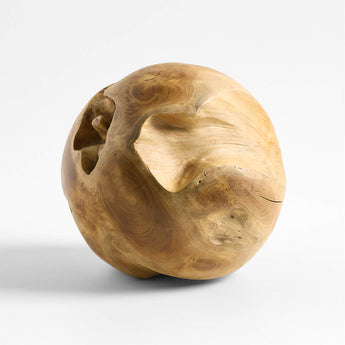 Nuestra escultura esfera muestra la fascinante forma de la raíz natural de la teca. Tallada a mano por artesanos de gran talento, la esfera decorativa celebra las texturas orgánicas, el magnífico veteado y los tonos dorados de la duradera madera. Nuestra pequeña esfera decorativa tiene una presencia asombrosa pero discreta sobre un escritorio, una estantería o una mesa de centro.