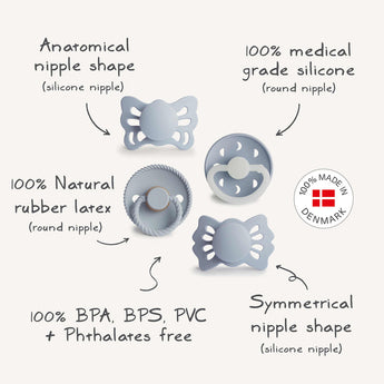 Baby Mushie Frigg Primer Chupete Luz de Luna Vela 4-Pack