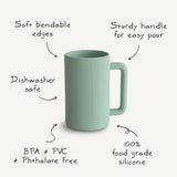 Fabricada con silicona de grado alimenticio y con colores relajantes, la taza de enjuague de baño Mushie ayuda a los niños a disfrutar de la hora del baño y terminar el día más limpios.