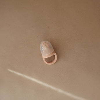 Introduzca en el comedero fruta fresca o congelada, verduras o incluso carne. El bebé puede entonces masticar, chupar y saborear la comida con sólo pequeños trozos saliendo por los agujeros
